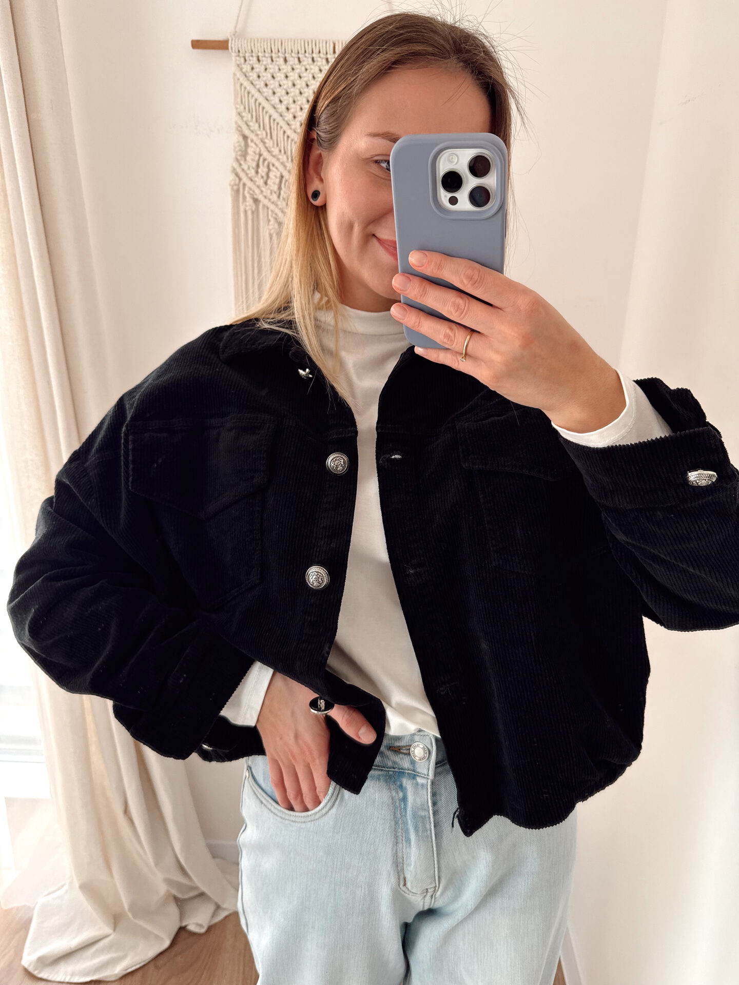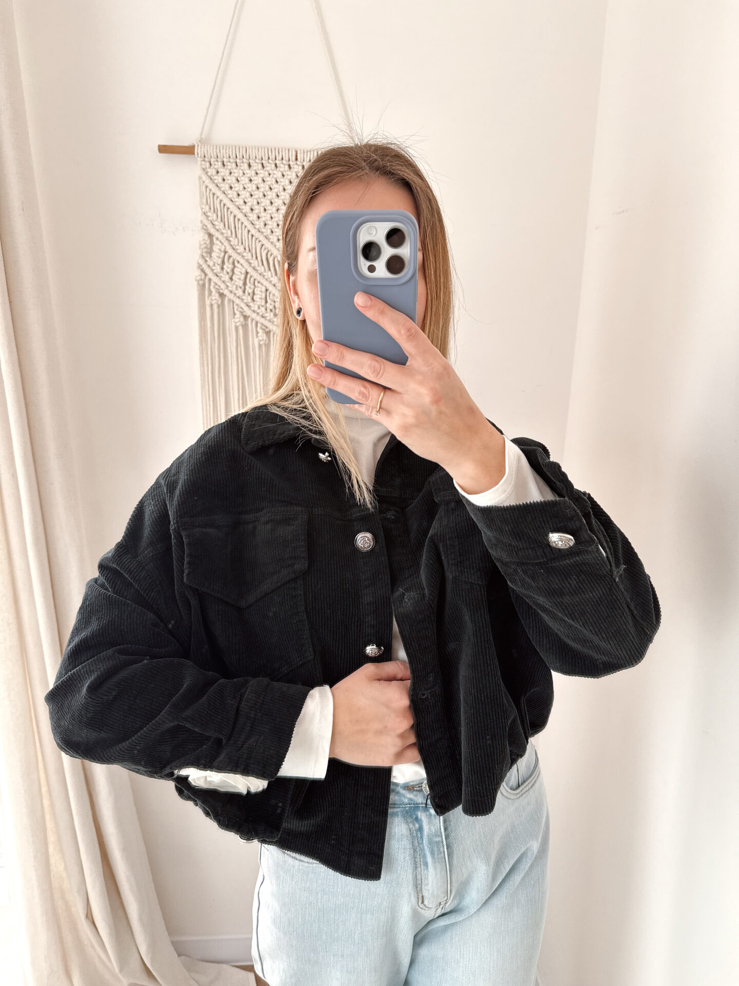 Kurtka sztruksowa oversize. Rękaw zakończony mankietem.