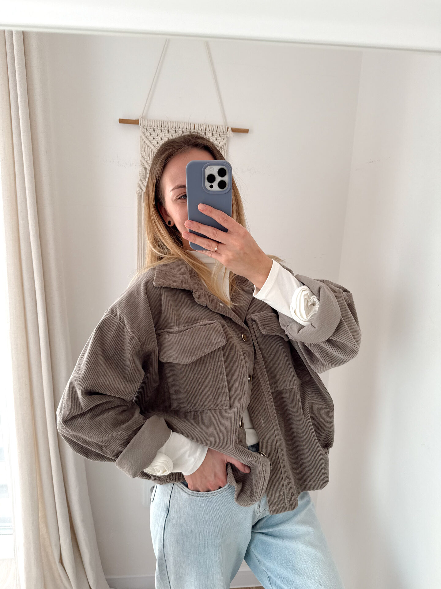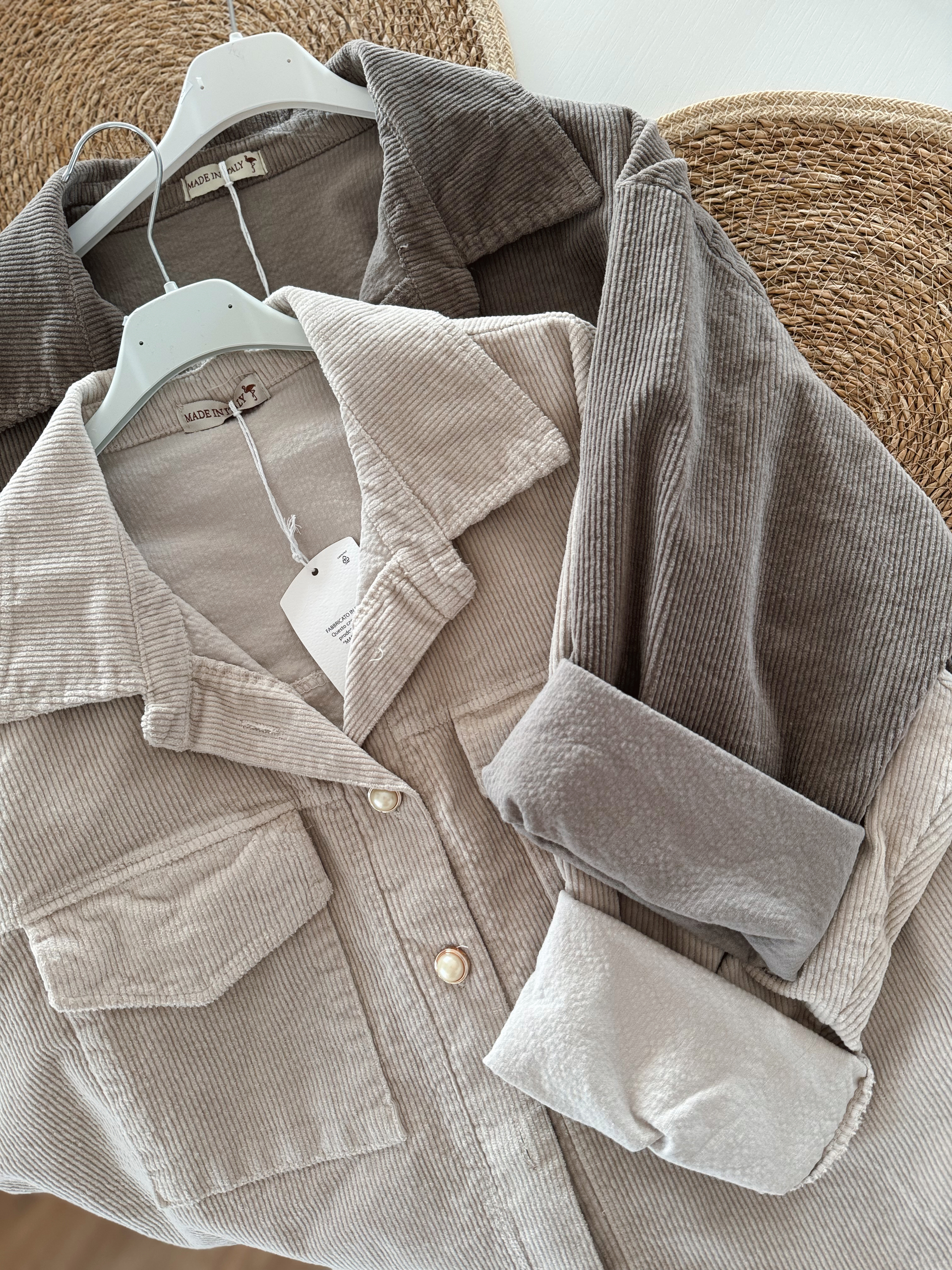 Kurtka sztruksowa oversize. Rękaw prosty, bez mankietów.