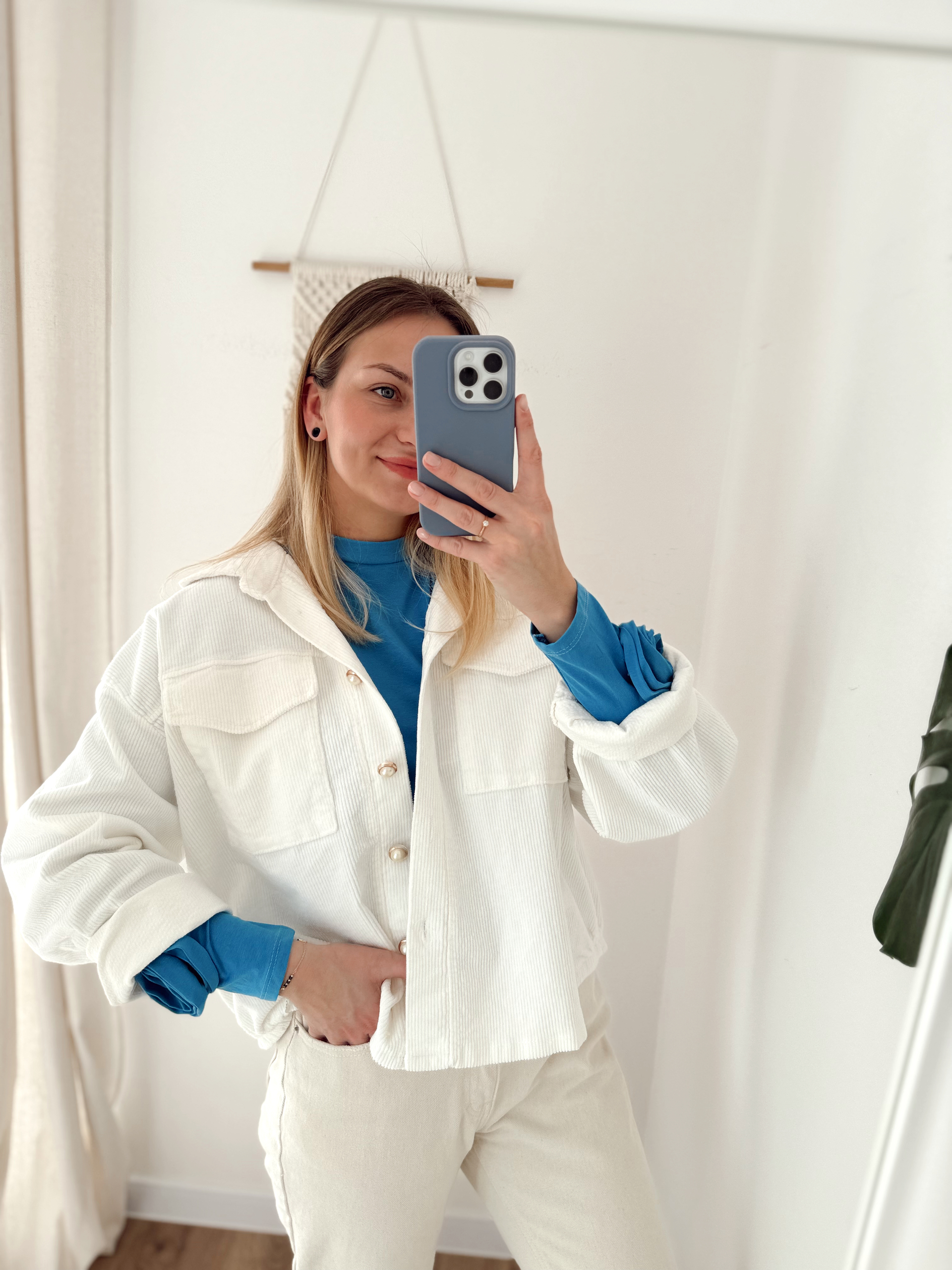 Kurtka sztruksowa oversize. Rękaw prosty, bez mankietów.
