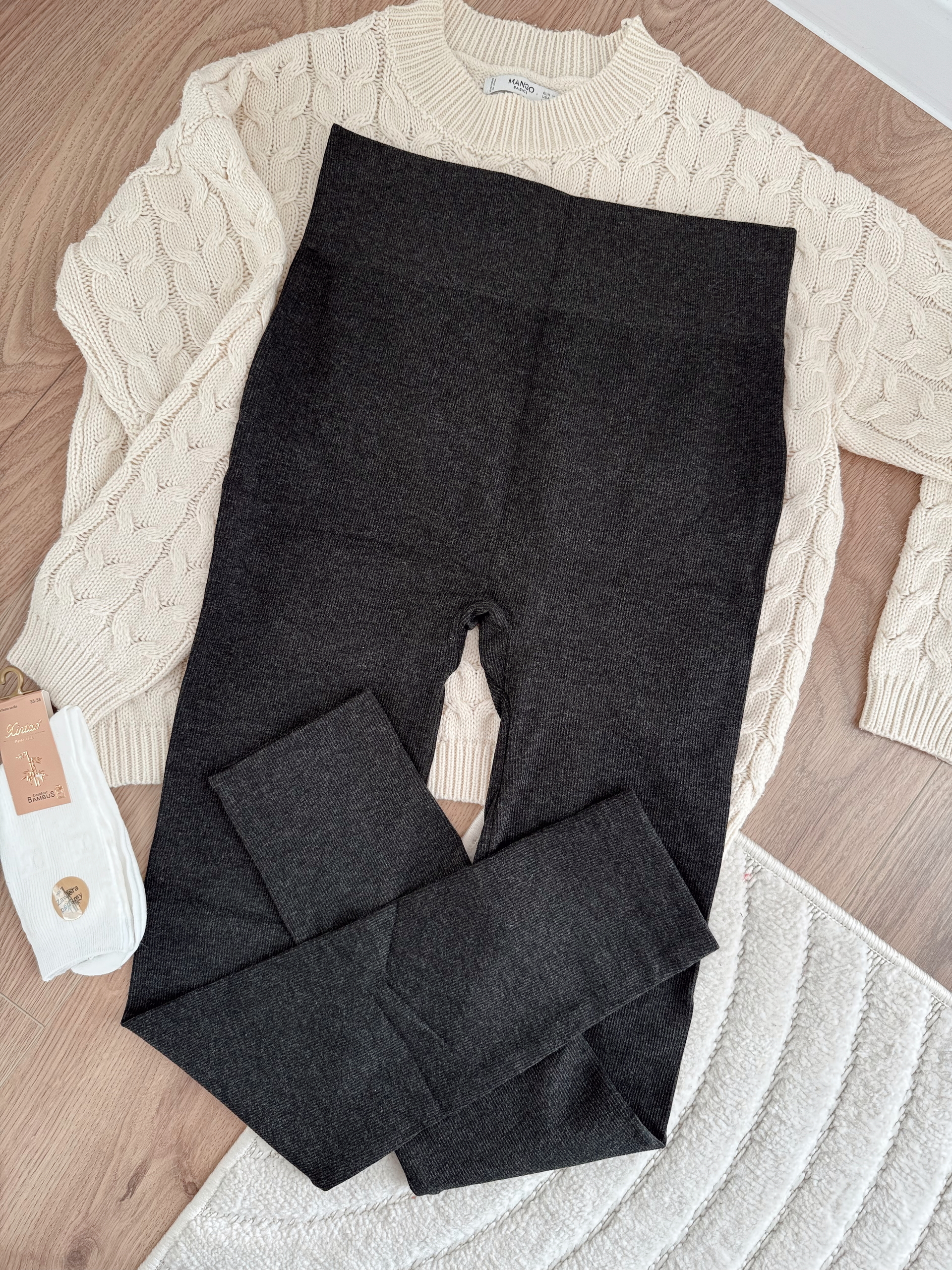 Zdjęcie w beżowych legginsach poglądowe.