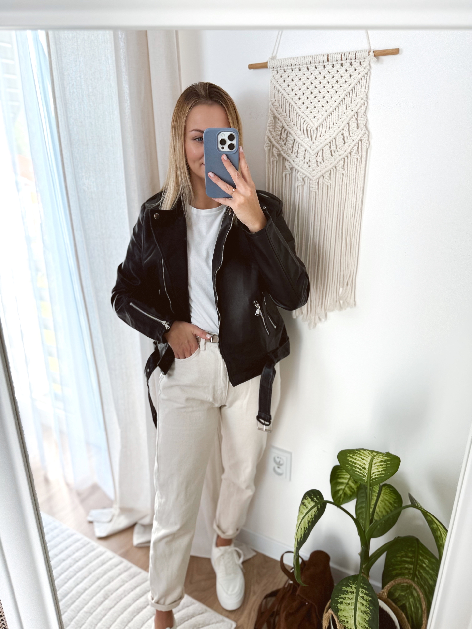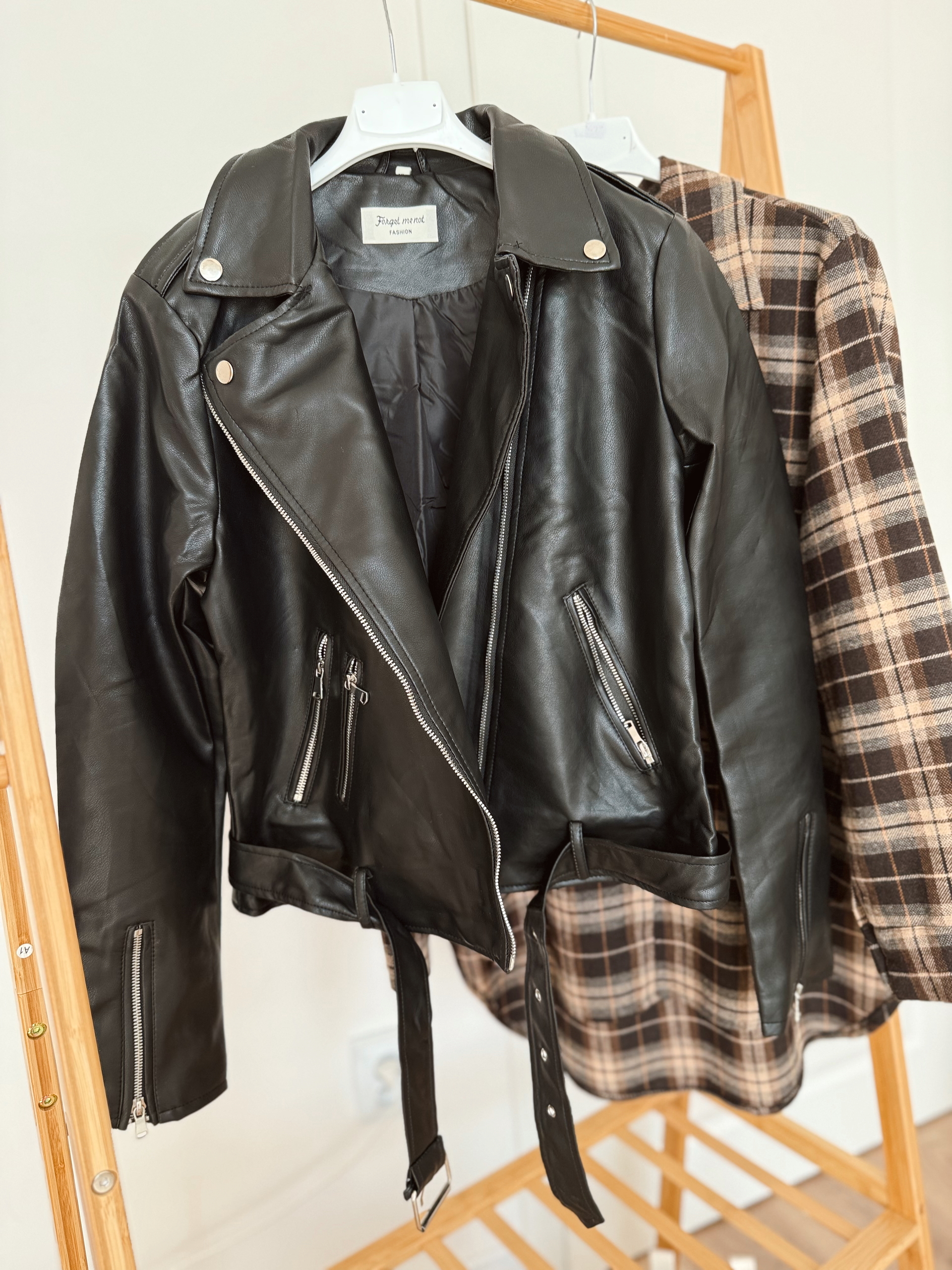 Ramoneska ekoskóra, na rękawach zamek. Posiada pasek.