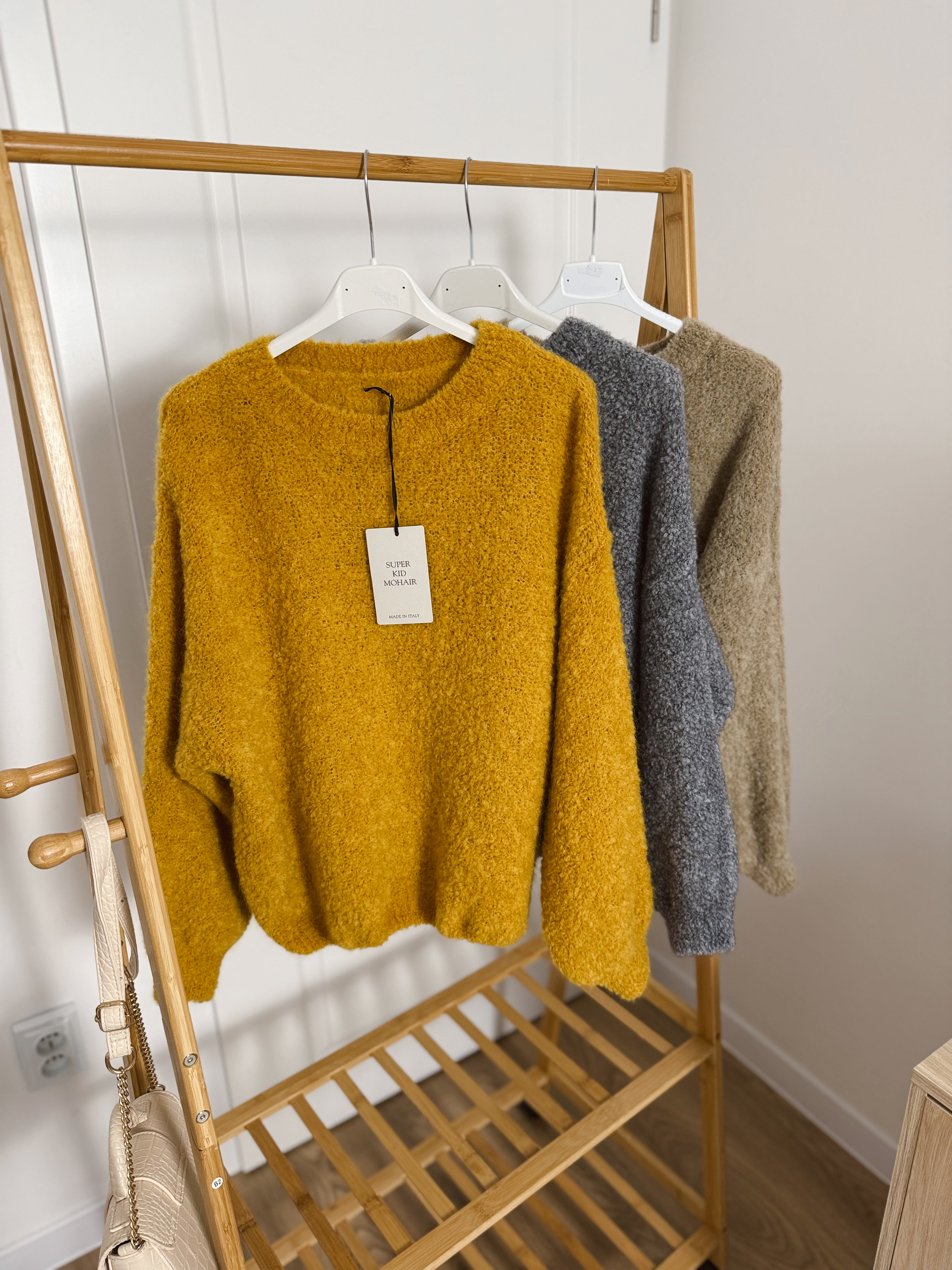 Skład: 50% akryl, 22% kid moher, 16% poliester, 10% wełna, 2% elastan